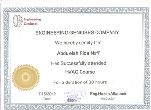 Сертификат прохождения курсов HVAC